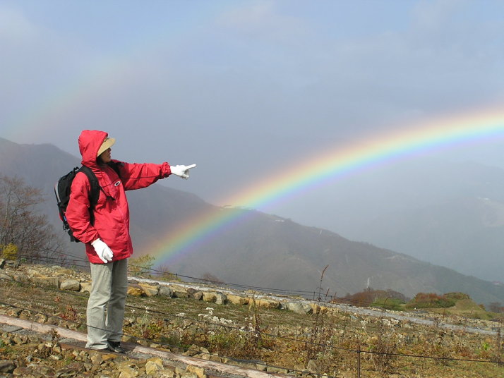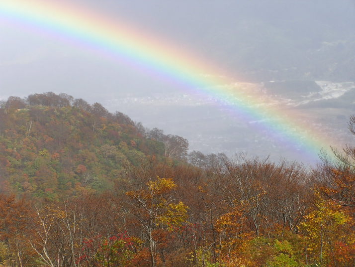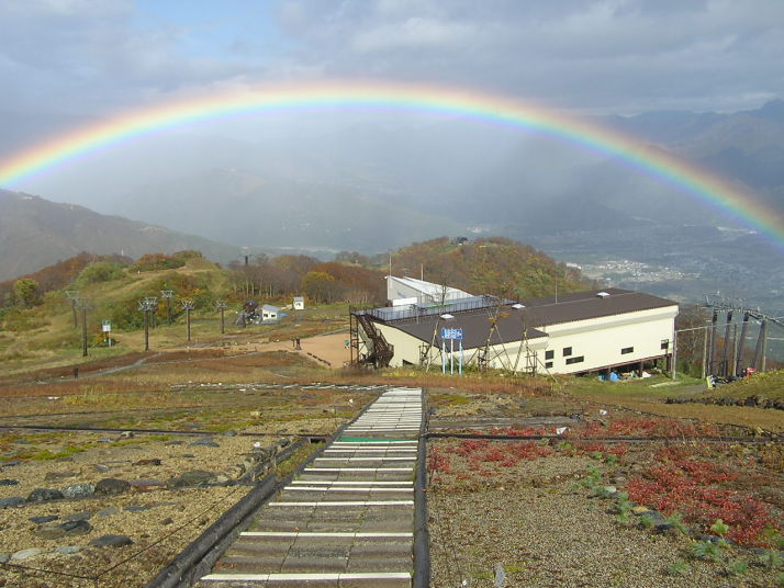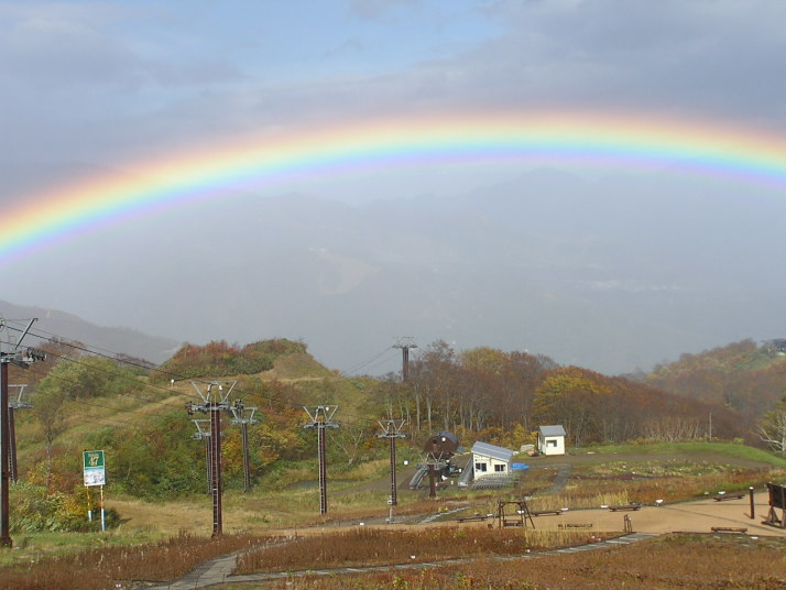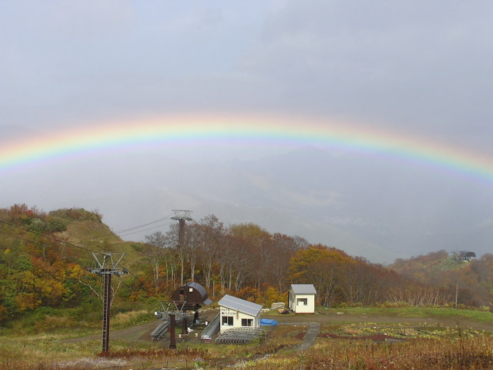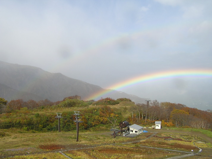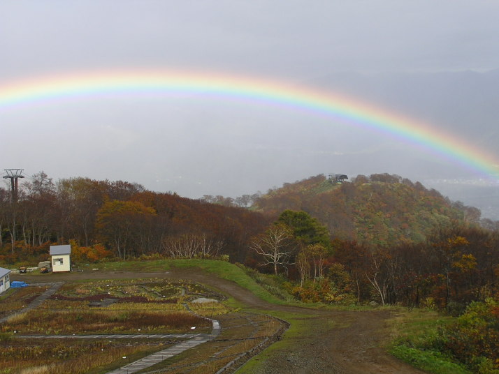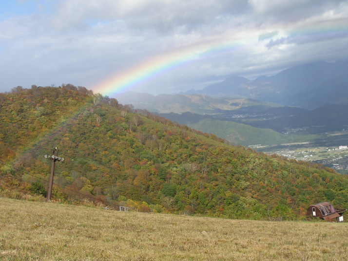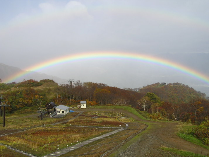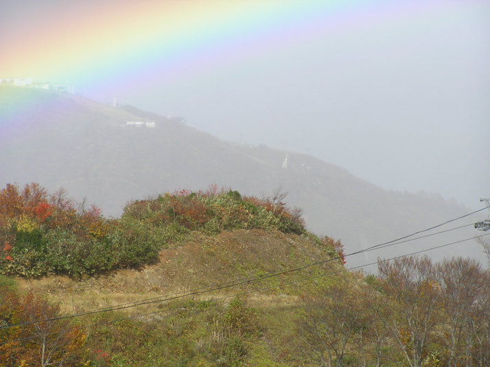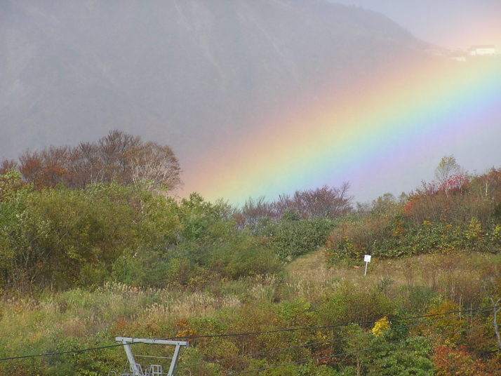 秋の紅葉と虹、白馬五龍スキー場2005年10月